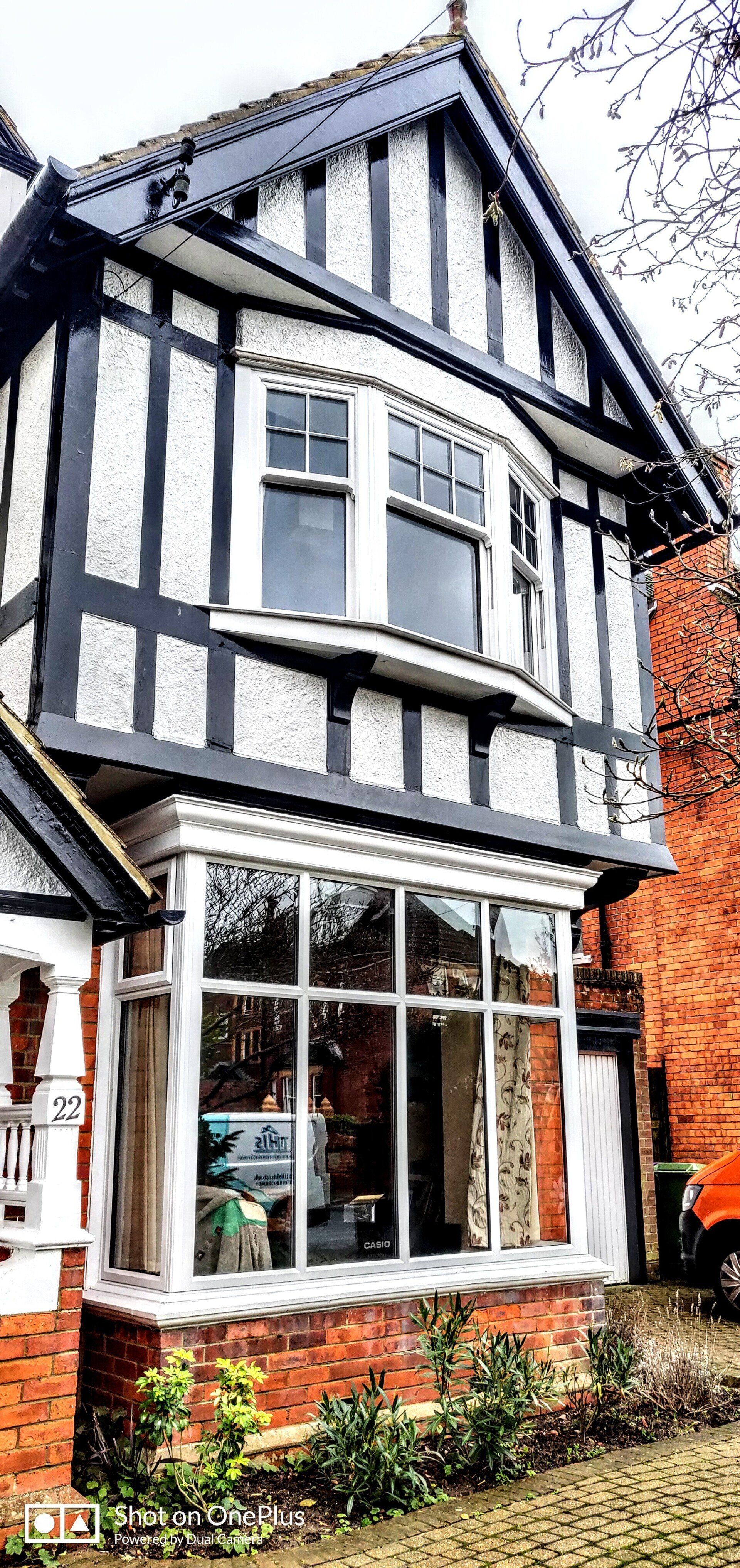Removing and replacing many of the rotten dark (and sometimes curved) timbers and loose and cracked white pebble-dash panelling. Repairing and re-painting all the timber barge boards, soffits and facias, porch carpentry and garage frames. This was just some of the work that helped to keep two large and attractive period properties near Radnor Park in Folkestone looking ship-shape