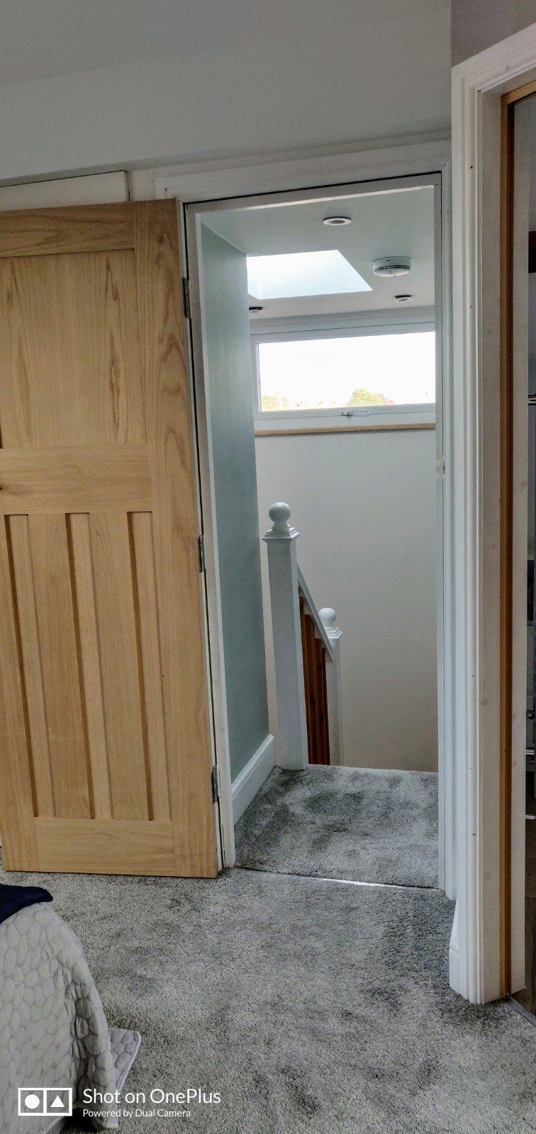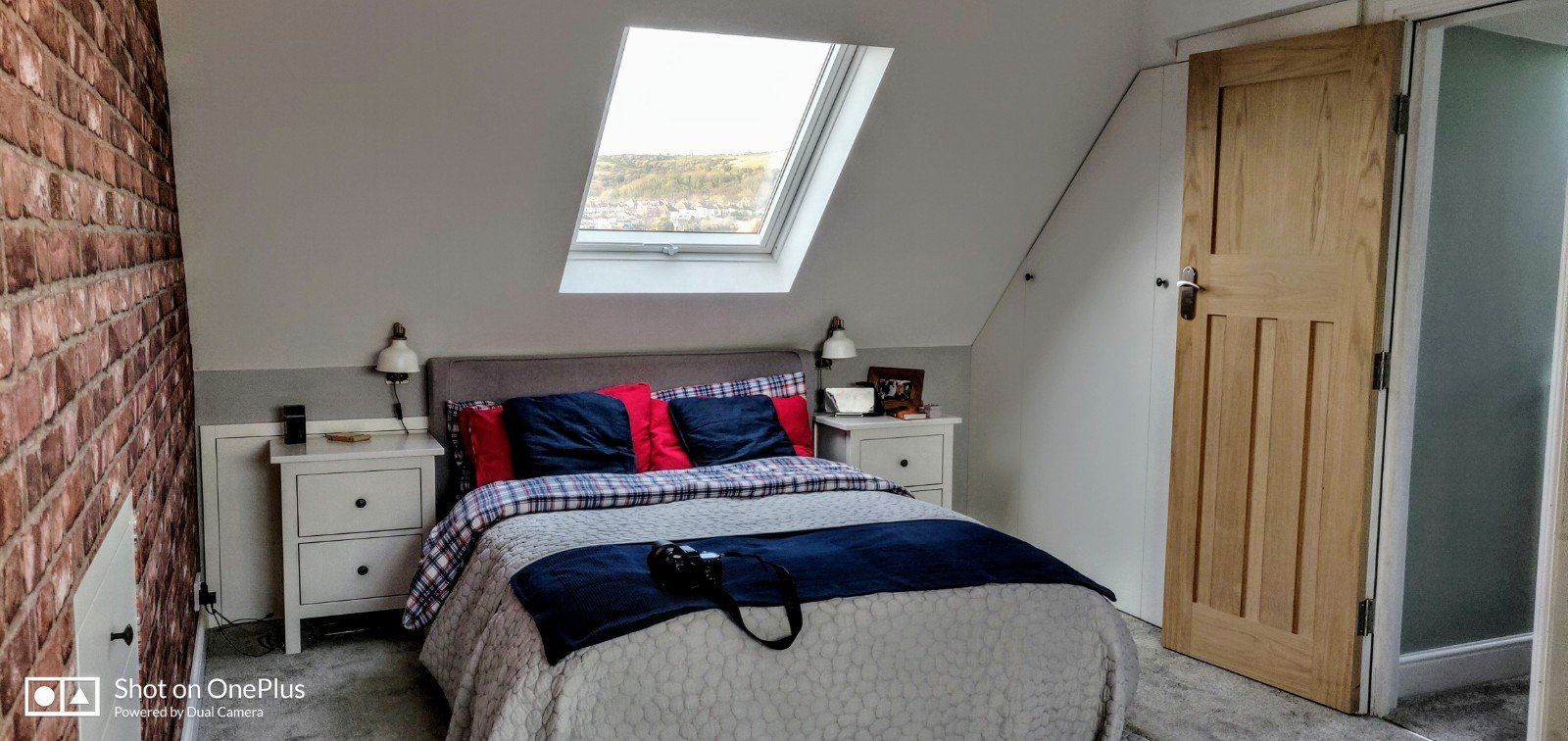 After lots of hard work and careful planning our customers have ended up gaining the best bedroom in the house for themselves! They have great views of the East Cliff thanks to the use of several Velux roof windows in the loft space as well the additional dormer windows. They insisted on using every ounce of space and so have full access to under the eaves storage on both ends as well as a deep and full height wardrobe behind the doorway.