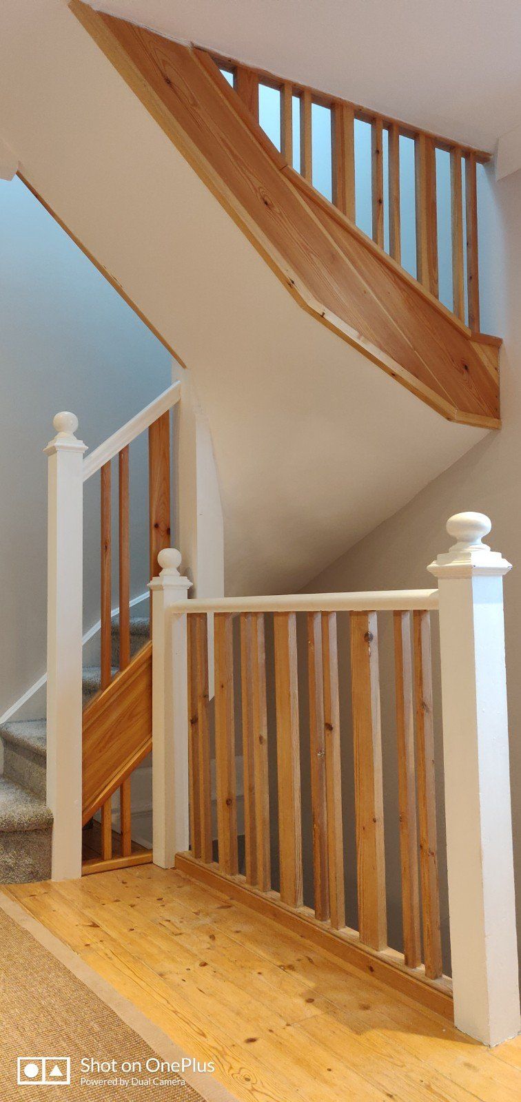 As with many loft conversions, making the new loft staircase fit into the existing house without sacrificing any space is always difficult. Good design early on is key. In this case the stairs continue to rise above the existing staircase and a dormer was created to provide head height for the top of the landing. This way the stairs did not eat in to existing house or take up too much of the loft space. With a panoramic window and a roof light in this dormer, the new stairwell feels light and looks attractive.